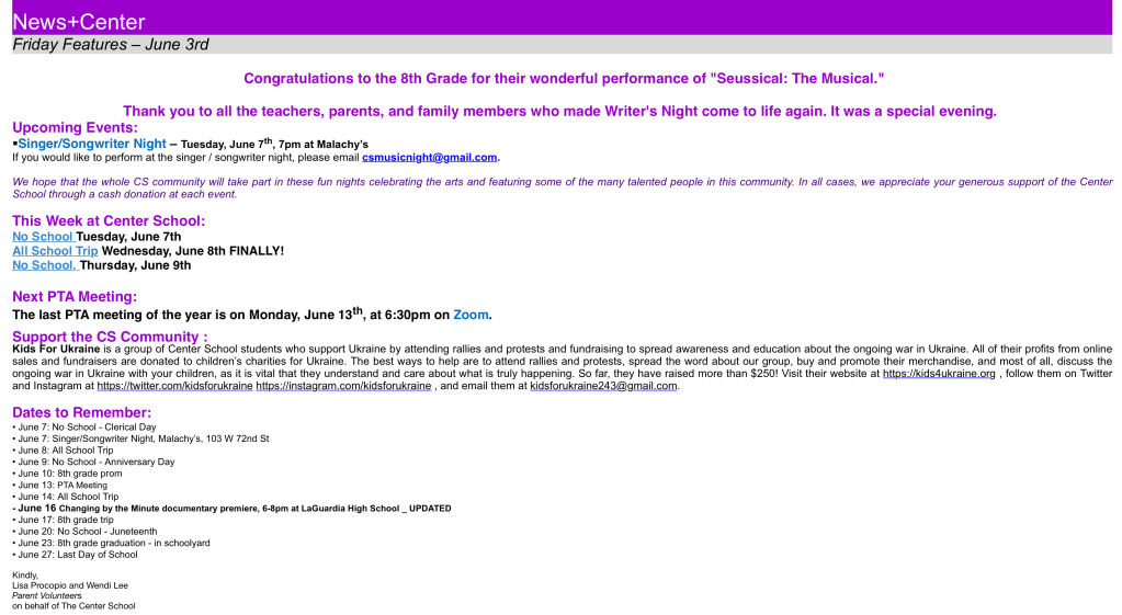 News+Center Friday Features June 3rd Posted bybacegrooveJune 3, 2022June 5, 2022Posted inOther, PTA NewsTags:documentary, noschool, schooltrip, singersongwriter, trip Share this: Click to share on Facebook (Opens in new window) Facebook Click to share on X (Opens in new window) X Like Loading... Related