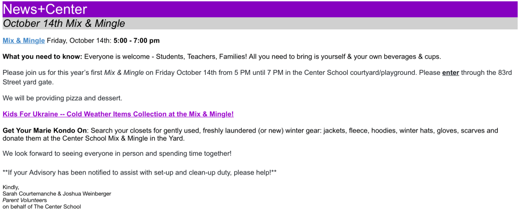 10/14/22 News+Center Posted bybacegrooveOctober 14, 2022Posted inGiving, PTA News Share this: Click to share on Facebook (Opens in new window) Facebook Click to share on X (Opens in new window) X Like Loading... Related