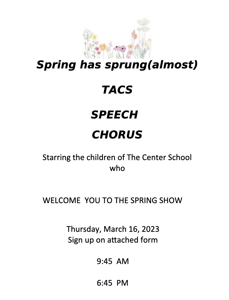 3/13/23 TACS on THURSDAY! Posted bybacegrooveMarch 14, 2023Posted inFrom the Principal, TACSTags:community, signup, TACS Please sign up using the link sent to your email. Share this: Click to share on Facebook (Opens in new window) Facebook Click to share on X (Opens in new window) X Like Loading... Related