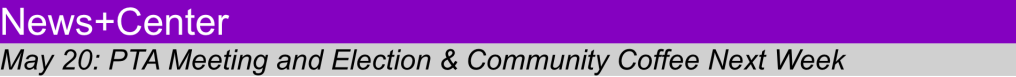 This upcoming week is a busy one! We have our May PTA meeting and elections on Monday, May 22. Finally, we will be hosting our next PTA Community Coffee on Wednesday, May 24, in the courtyard, after morning drop-off.