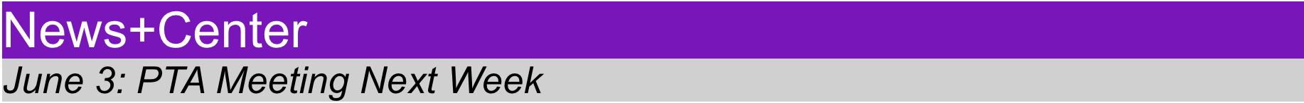 We will host our last PTA meeting of the year on Monday, June 5 at 6:30 pm. We have included the agenda with this newsletter. During the meeting, we will vote on our revised by-laws as well as next year’s budget proposal. We have included both the budget and by-laws for your review.